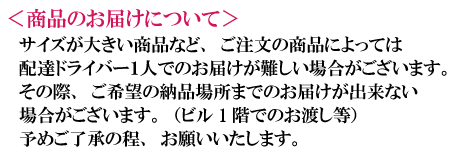 | 販売数量 | ご注文いただきました商品が在庫切れの場合は、納期をTEL、またはメールでご連絡差し上げます。 |